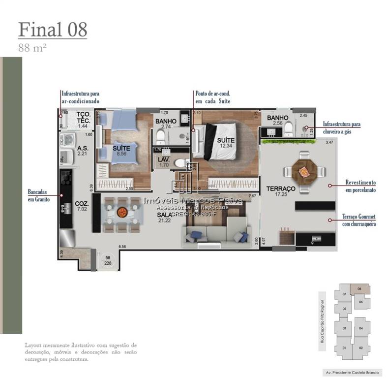 Área Útil88,00m²
