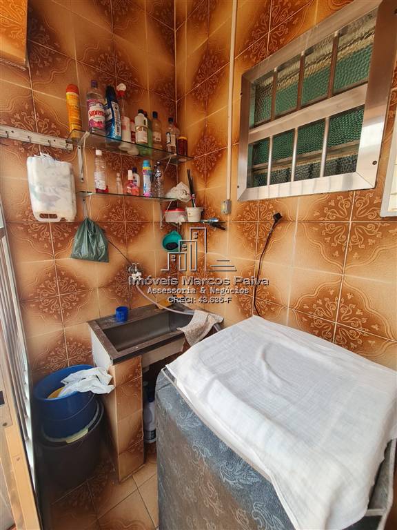 Banheiro social e área de serviço coberta.