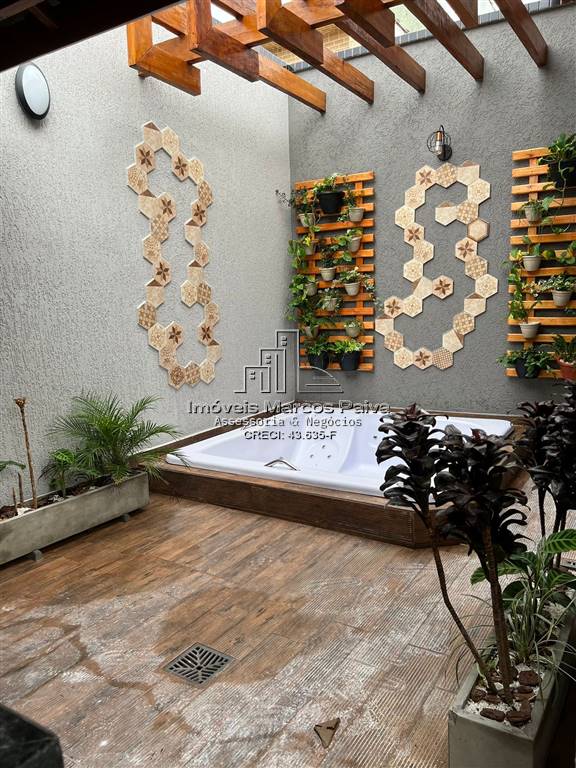 1 lavado na área gourmet, área de serviço externa, garagem para 2 carros, área gourmet com churrasqueira e spa.